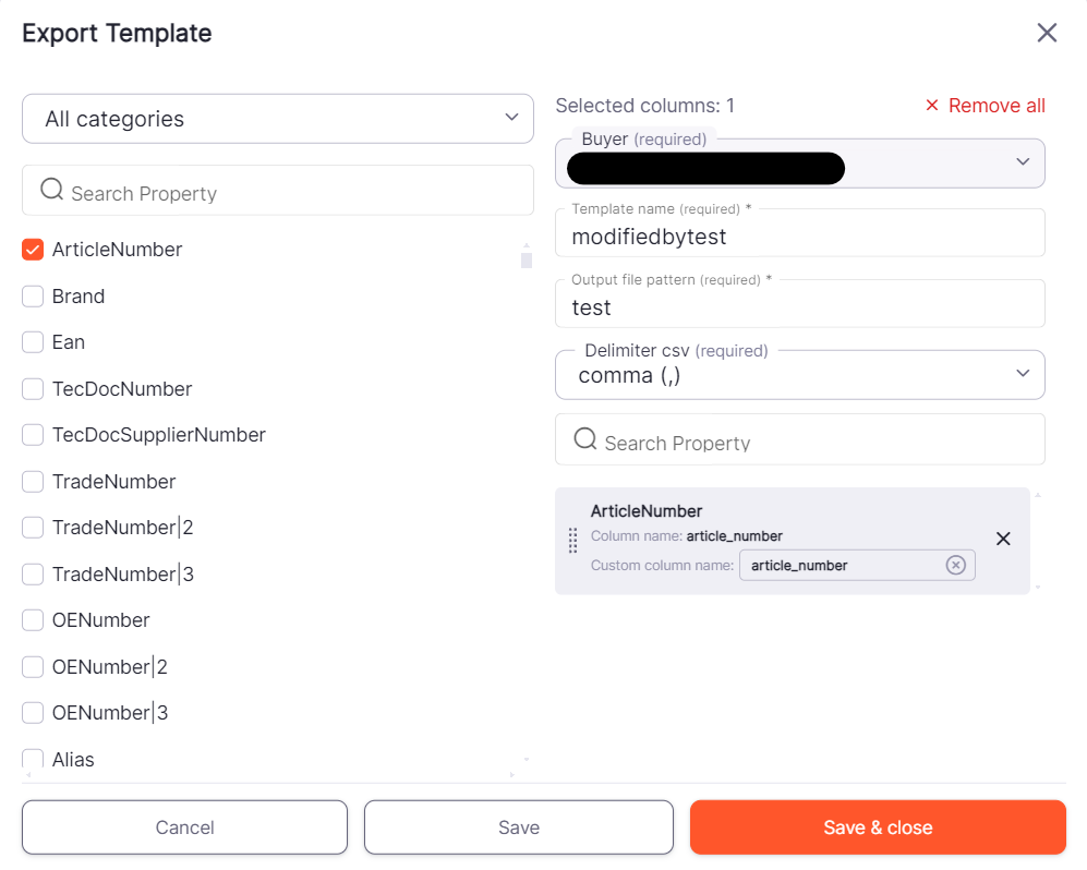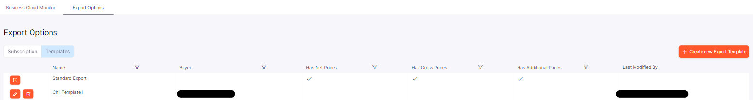 With Templates you have the possibility to define the export columns for csv exports for your buyer organizations.