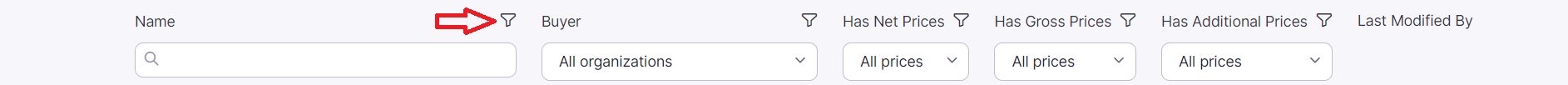 With click on one of the filter icons in the header you have the possibility to filter your list.